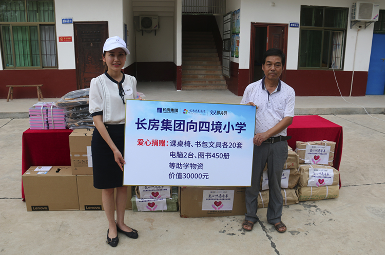 愛心傳遞,夢想飛揚。2018年8月23日,在長沙市青少年發(fā)展基金會的指導(dǎo)下,長房集團(tuán)“藍(lán)絲帶”愛心傳遞基金活動走進(jìn)湘潭縣青山橋鎮(zhèn)四境小學(xué),本次活動由湘潭市時代置地有限公司協(xié)辦,為貧困學(xué)生們帶來了價值30000元的愛心課桌椅、文具和圖書等愛心助學(xué)物資和一場生動活潑的兒童成長心理輔導(dǎo)課程。湘潭市住房和城鄉(xiāng)建設(shè)局領(lǐng)導(dǎo),長房集團(tuán)黨群工作部負(fù)責(zé)人及湘潭市時代置地有限公司領(lǐng)導(dǎo)等出席捐贈儀式。