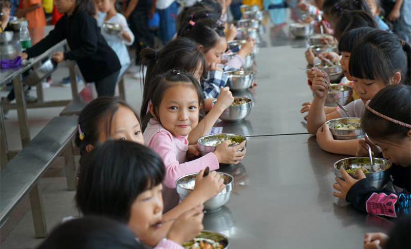 湖南省安化縣奎溪鎮(zhèn)完小現(xiàn)有13個教學班,學生592人,33名教職員工。以前由于學校食堂太小、餐桌破爛不堪,而且沒有凳子,學生們只能分批次就餐,二十幾個孩子圍在四張拼在一起的餐桌旁站著吃飯。為了解決孩子們的就餐環(huán)境,學校通過各種努力貸款新修建了學校食堂,新學期已投入使用,但舊的餐桌已無法繼續(xù)使用。為保障孩子們能有一個干凈整潔、溫馨如家的食堂,長房集團“藍絲帶”愛心傳遞基金向奎溪鎮(zhèn)完小捐贈了70套不銹鋼餐桌椅,徹底解決了孩子們“站著吃飯”的問題。