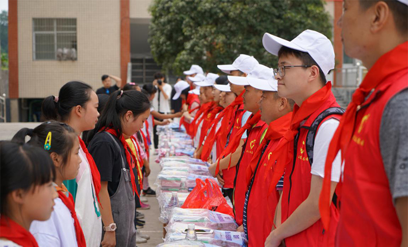 儀式現(xiàn)場,孩子們給全體志愿者及到場嘉賓系上了鮮紅的紅領(lǐng)巾,志愿者隨后向30名貧困學生送出了集團精心準備的書包、文具套裝、可洗水彩筆等學習用品,孩子們抱在懷里,甜在心里,愛不釋手。集團黨群工作部負責人表示本次捐助是集團一直踐行的初心,要求孩子們要以奎溪鎮(zhèn)完小為人生賽跑的起點,追逐遠大的夢想,并對孩子們提出三點希望:一是希望孩子們從小樹立遠大理想;二是希望孩子們熱愛偉大祖國;三是希望孩子們要懂得感恩,努力學習,回饋家鄉(xiāng)和社會。