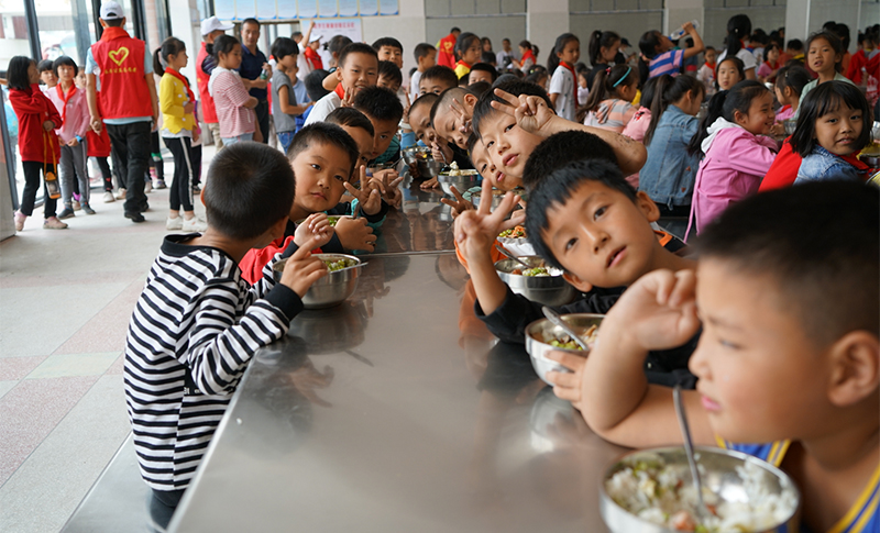 “感謝你們的慷慨解囊,送來了70張不僅美觀適用,而且質(zhì)量優(yōu)良的餐桌,解決了我們多年來擠在一起,站著吃飯的問題。如今,這些餐桌已經(jīng)成為學校一道美麗的風景?!鼻趹銓嵉年惽嗪PiL激動地向大家致謝,并表示這不僅是物質(zhì)上的幫助,更帶給大家精神上的鼓舞,讓全體師生感受到了社會的溫暖。