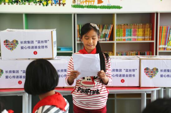 在長房集團(tuán)藍(lán)絲帶愛心書屋掛牌暨圖書捐贈儀式現(xiàn)場,長沙市青少年發(fā)展基金會副理事長胡朝軍講到,長房集團(tuán)為鄉(xiāng)村學(xué)子送上了精神食糧,是響應(yīng)精準(zhǔn)扶貧政策的具體體現(xiàn),彰顯了企業(yè)高度的社會責(zé)任感,希望學(xué)校充分利用愛心書屋幫助孩子們增長知識、拓寬眼界。受贈學(xué)校校長表示,一定會愛惜和用好愛心書屋,使書屋成為孩子們求學(xué)追夢途中的加油站。孩子們說有了“愛心書屋”之后,學(xué)校每周專門開了兩節(jié)閱讀課,讓他們在書屋自由閱讀,沒讀完的書可以申請借回家閱讀,閱讀課已經(jīng)成為他們最喜歡的課程。